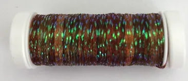 Shimmer Floss is a braided ribbon with a combination of rayon and metallic fibers approximately 1/8" wide. As it is stitched it can be laid flat or simply stitched. Use as a single thread in lengths of 24" or less.