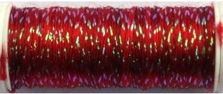 Shimmer Floss is a braided ribbon with a combination of rayon and metallic fibers approximately 1/8" wide. As it is stitched it can be laid flat or simply stitched. Use as a single thread in lengths of 24" or less.