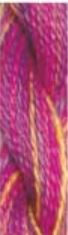 Hand-dyed 12 ply spun silk. 6 yard skeins. Easily divided, it fits beautifully on many fabric and canvas sizes. Four plies work well on 18 count canvas, two plies cover 18 count fabric for cross stitch. Also use two plies for cross stitch over two threads on 28 count fabric. Good for surface embellishment on quilts. 6 yard skein.